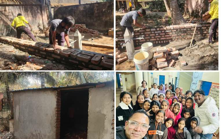 During multiple visits, they identified one of the most pressing concerns at the ashram — the lack of a proper bathroom facility, a necessity that had long been unavailable. Previously, the girls had been compelled to use nearby bushes, raising serious issues around safety, privacy, hygiene and mental wellbeing. With formal approval from the authorities, UK based Odia Entrepreneur Captain Arun Kar (Retd.) and Mrs Nidhi Kar personally undertook to finance the construction of a dedicated bathroom facility. Work commenced in January 2026, marking a significant step towards resolving a long-standing and sensitive problem. The roof has now been completed, and the project is expected to be fully finished within days.