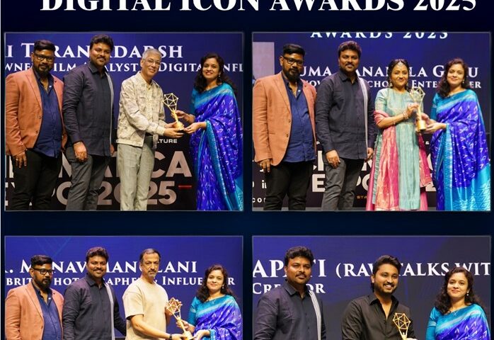 Hyderabad — The city witnessed a glittering celebration of India’s finest digital minds at the Digital Icon Awards 2025, held at HICC Convention Center, Hyderabad, in the presence of top creators, film and media personalities, and distinguished government officials. Organized by the Bharat Digital Media Federation (DMF) in association with Cinematica Expo and supported by the Government of Telangana and the Ministry of Information and Broadcasting, the event brought together India’s leading voices shaping the country’s digital future.