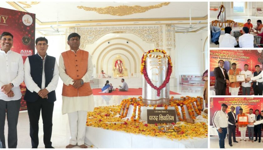 Haridwar, Representative: The world’s largest 5,210-kilogram Parad (Mercury) Dhyan Lingam was ceremonially installed in Haridwar on the auspicious occasion of Mahashivratri. This grand Parad Shivling was created by Girnar-based Dhyan Guru Raghunath Yemul Guruji after years of spiritual practice, research, and tireless dedication. Owing to its massive weight of 5,210 kilograms and unique dimensions, the Parad Dhyan Lingam has been honored by India World Record and Asia World Record.