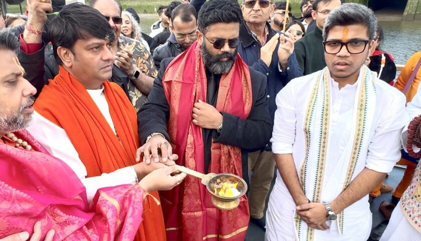 Conceptualised and envisioned by H.H. Shri Rajrajeshwar Guruji and Dr Ishan Shivanand Ji USA, the ceremony took place aboard a specially arranged boat on the Thames, transforming the iconic river into a sacred spiritual space reminiscent of the holy Ganges.