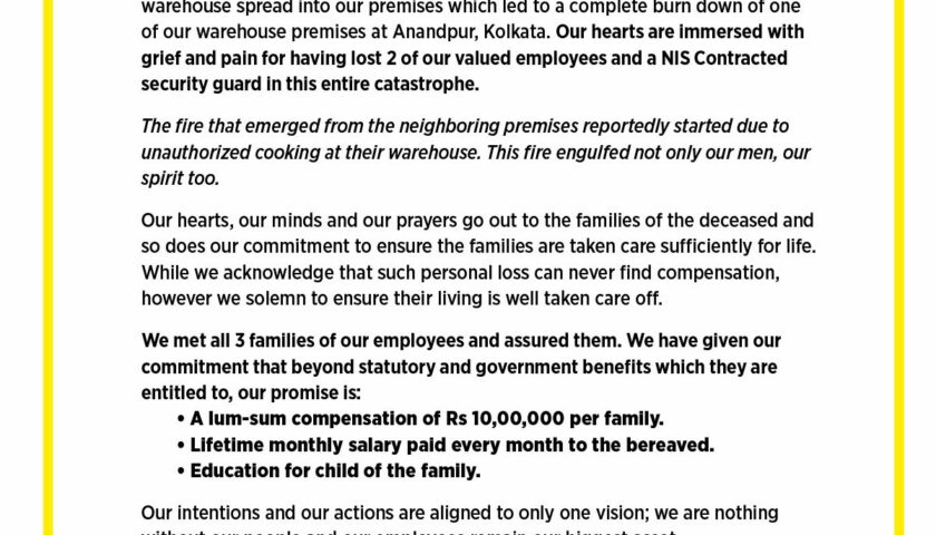 “The unit was equipped with 23 fire extinguishers and was largely compliant with fire safety norms, with all required approvals in place. We are fully cooperating with the authorities in the ongoing investigation.