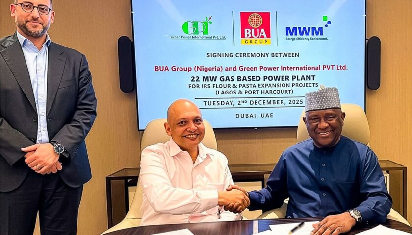 As part of the recently signed deal, Green Power International will install a gas-based power plant at BUA Group’s IRS Flour & Pasta expansion projects in Lagos and Port Harcourt, Nigeria. The agreement was officially signed on December 2, 2025, between Ashu Jain, Executive Director of Green Power International, and Abdul Samad Rabiu, Founder & Executive Chairman of BUA Group, in the presence of Rabih Yazbeck, Regional Director of MWM.