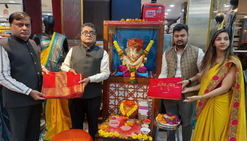 Pune : In a heartfelt initiative, Satyanarayan Cloth Stores in Wagholi organized a campaign named ” Do Dhage Shraddha ke .” The purpose of this was to weave a saree for Mata Sita and clothes for Lord Shri Ram and send them to Ayodhya. In which the people of Pune participated enthusiastically and with their devotion, they wove clothes for Lord Ram and Sita, after which the specially woven items were ceremonially sent to Ayodhya after a ritualistic puja.