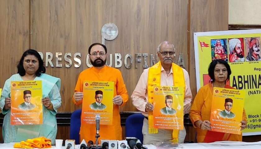 On 13th May 2025, the National President of Abhinav Bharat Party, Chetan Sharma, addressed a press conference at the Press Club of India, New Delhi. He announced that on the occasion of the 132nd birth anniversary of the great revolutionary Veer Vinayak Damodar Savarkar on 28th May, a 30-day “Savarkar Samman Yatra” will be undertaken from Bhagur (Nashik) to Delhi. This Yatra will pass through 100 districts across 20 states of the country.