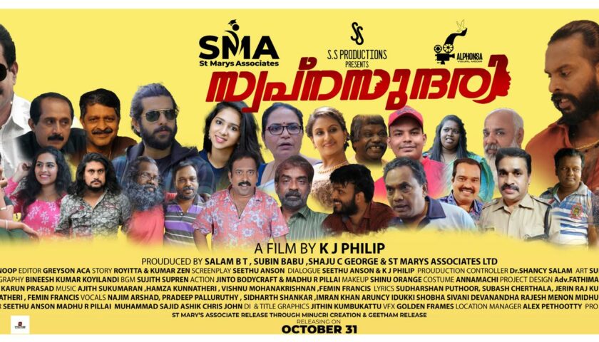 The much-anticipated Malayalam film Swapnasundari, starring Bigg Boss Season 6 winner Jinto and Bigg Boss Season 2 sensation Dr. Rajith Kumar, is gearing up for a grand theatrical release across India on October 31, 2025, followed by an overseas release in the UK, Europe, and UAE on November 7, 2025. Produced under the banners of S.S. Productions, Alphonsa Visual Media, and St. Mary’s Associates Pvt. Ltd. by Salam B.T., Subin Babu, and Shaju C. George, the film is helmed by acclaimed director K.J. Philip. With a compelling storyline and a star-studded ensemble, Swapnasundari promises to be one of the most talked-about Malayalam thrillers of the year.